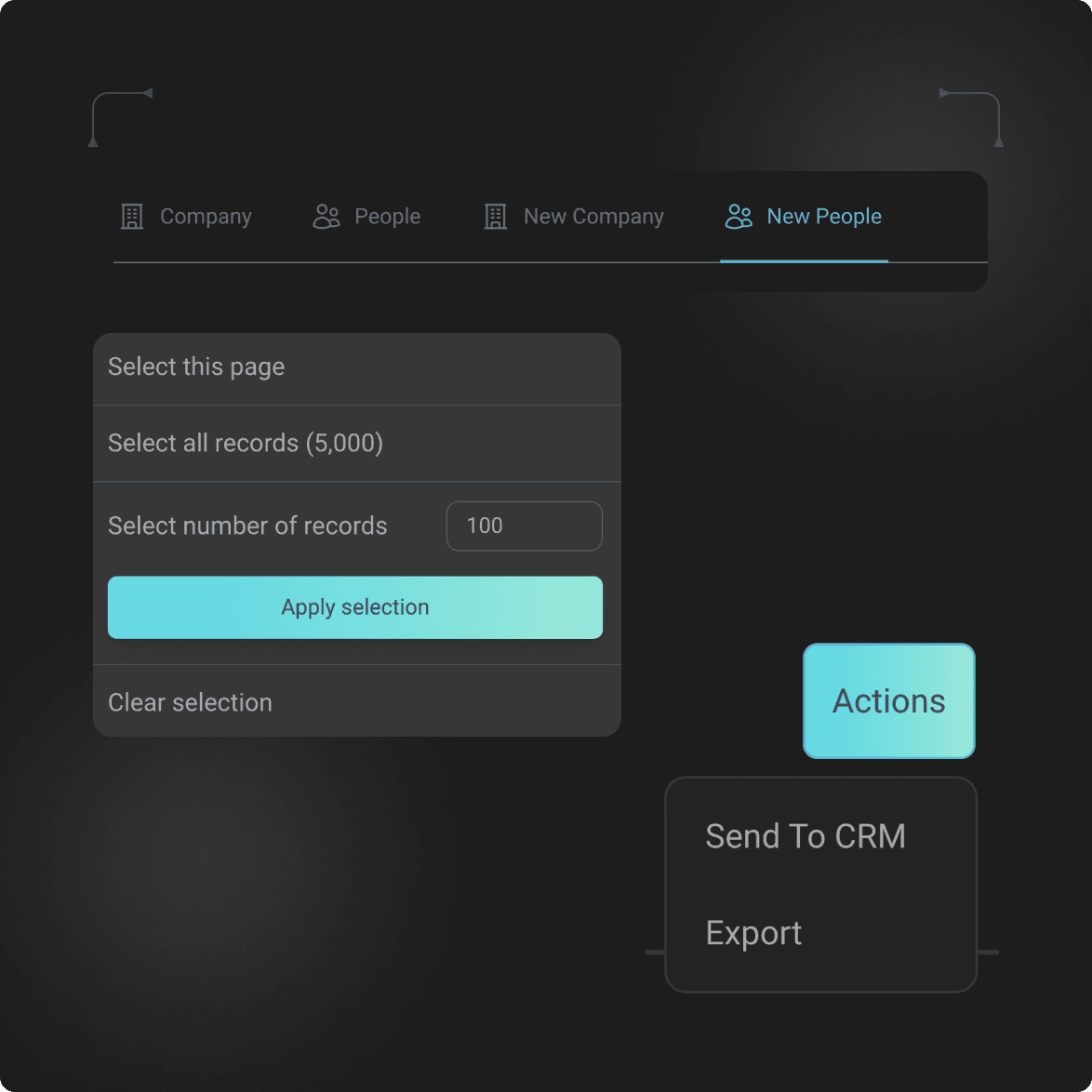 Filter your company recommendations down to the most interesting and send to your crm right away
