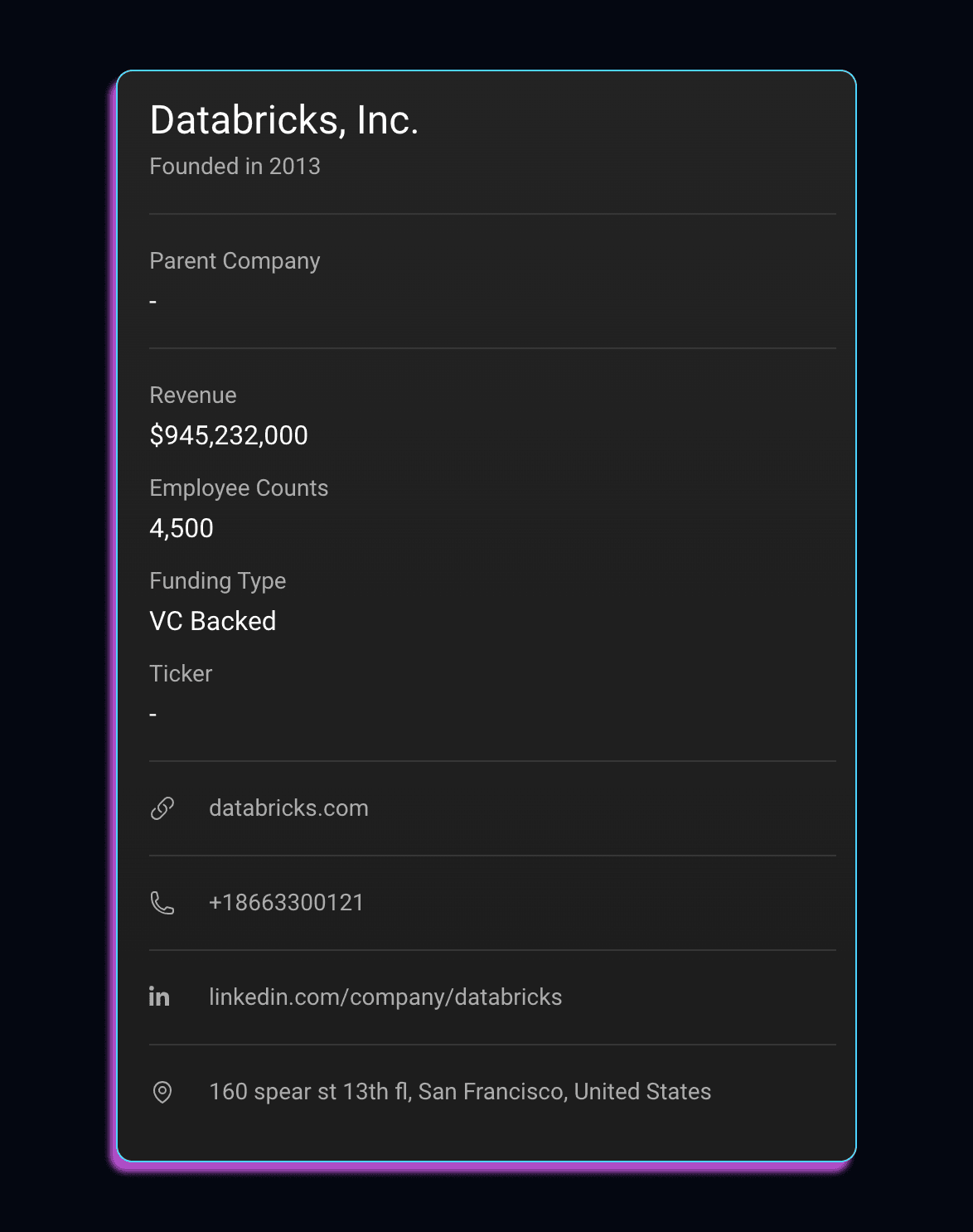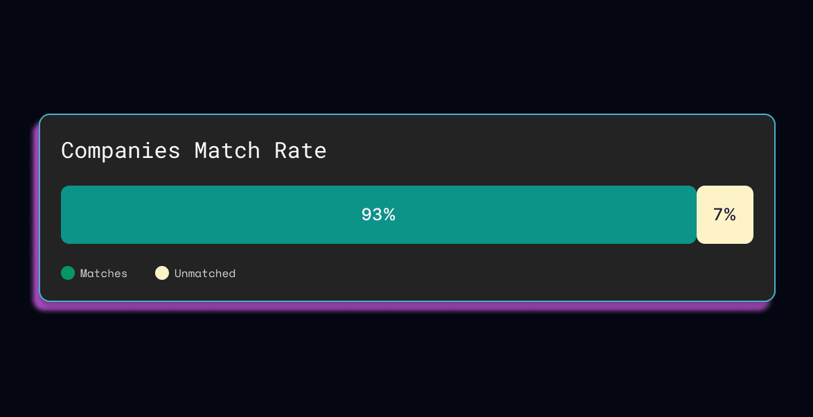 Quickly see what percentage of your accounts in crm we've matched to our data set. This is the total number of your accounts we're able to enrich.