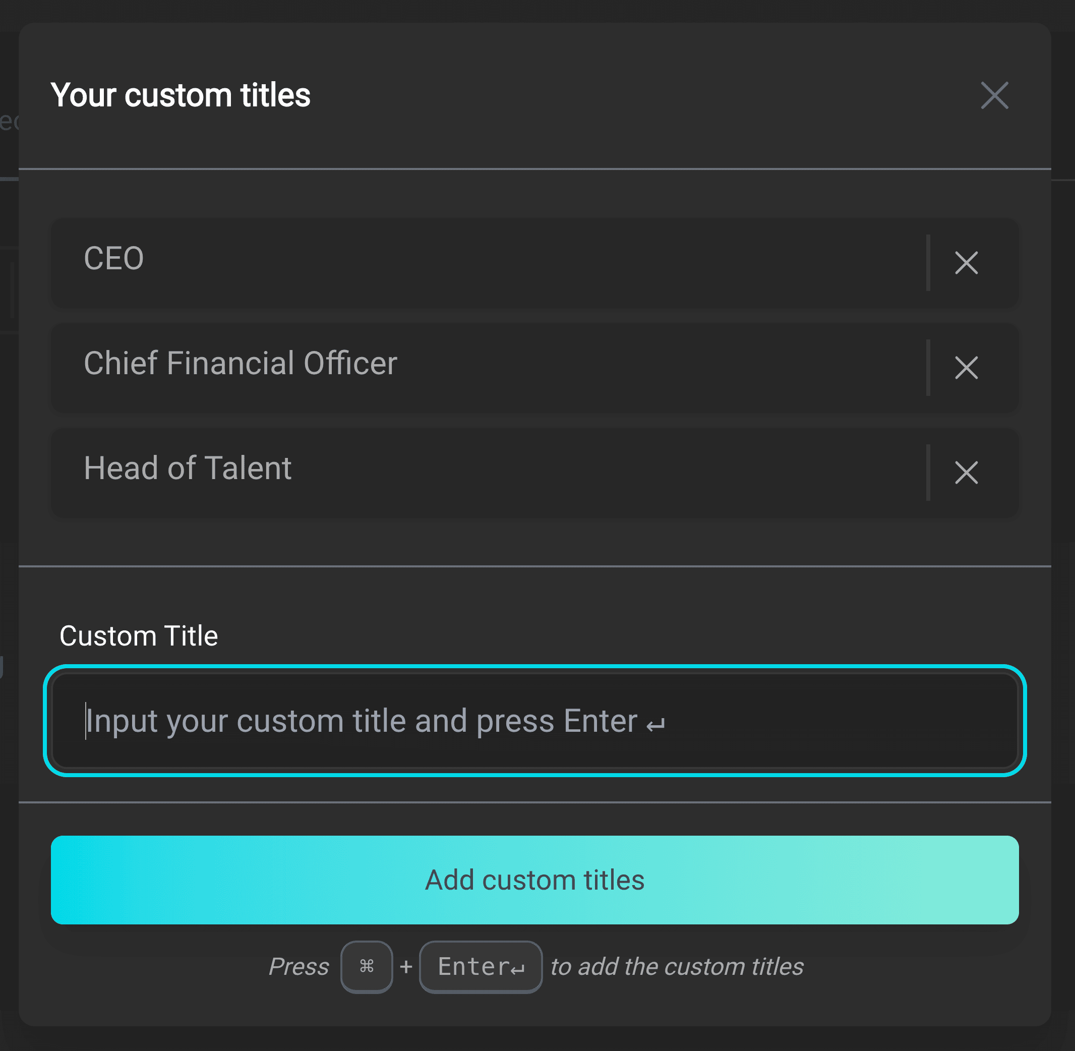 Any time you press Find People in the prospector module, RevTron will automatically apply the top 100 most commonly occurring titles in your crm to the search.