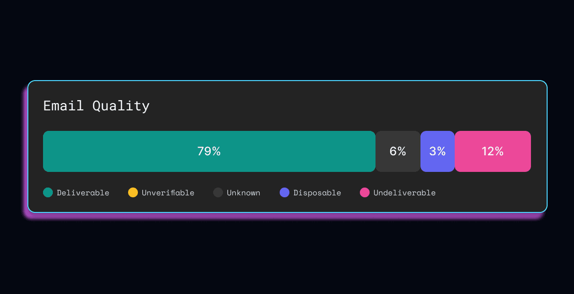 Quickly see what percentage of your emails in crm are undeliverable. Data decay is the worst at the person level.